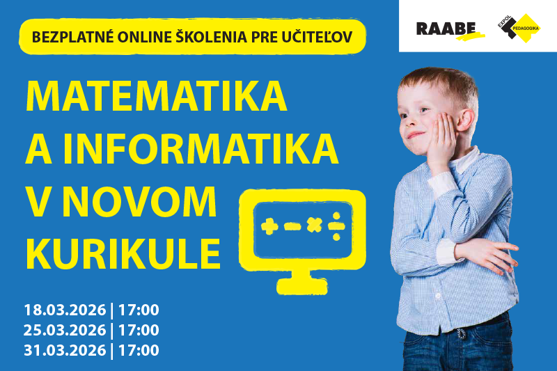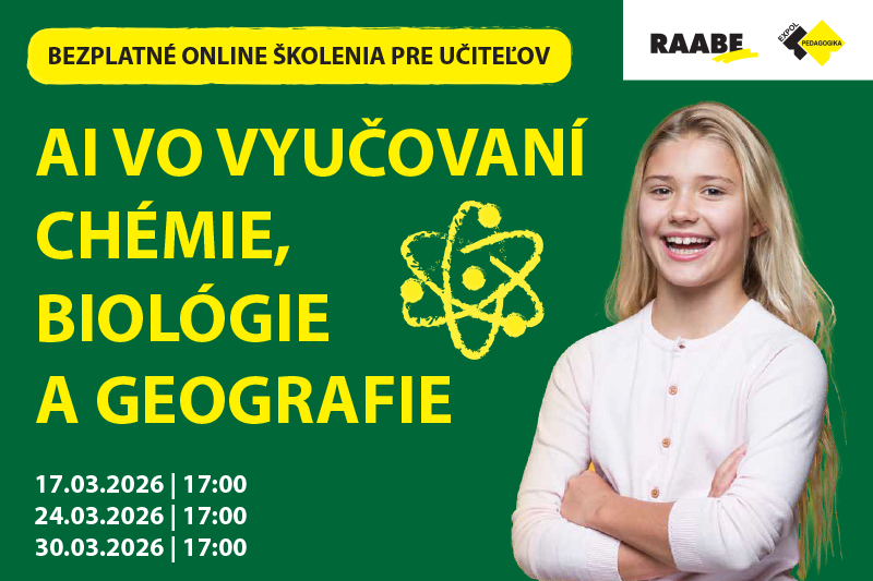 Stále u vás pretrvávajú obavy z prechodu na nové kurikulum? Ale súčasne vás "straší" aj umelá inteligencia? Uvažujete ako teóriu nového kurikula premietnete do praxe? A radi by ste našli rovnováhu vo využívaní AI v škole? RAABE a EXPOL online školenia pokračujú aj v marci! Pripojte sa z domu a celkom zadarmo!