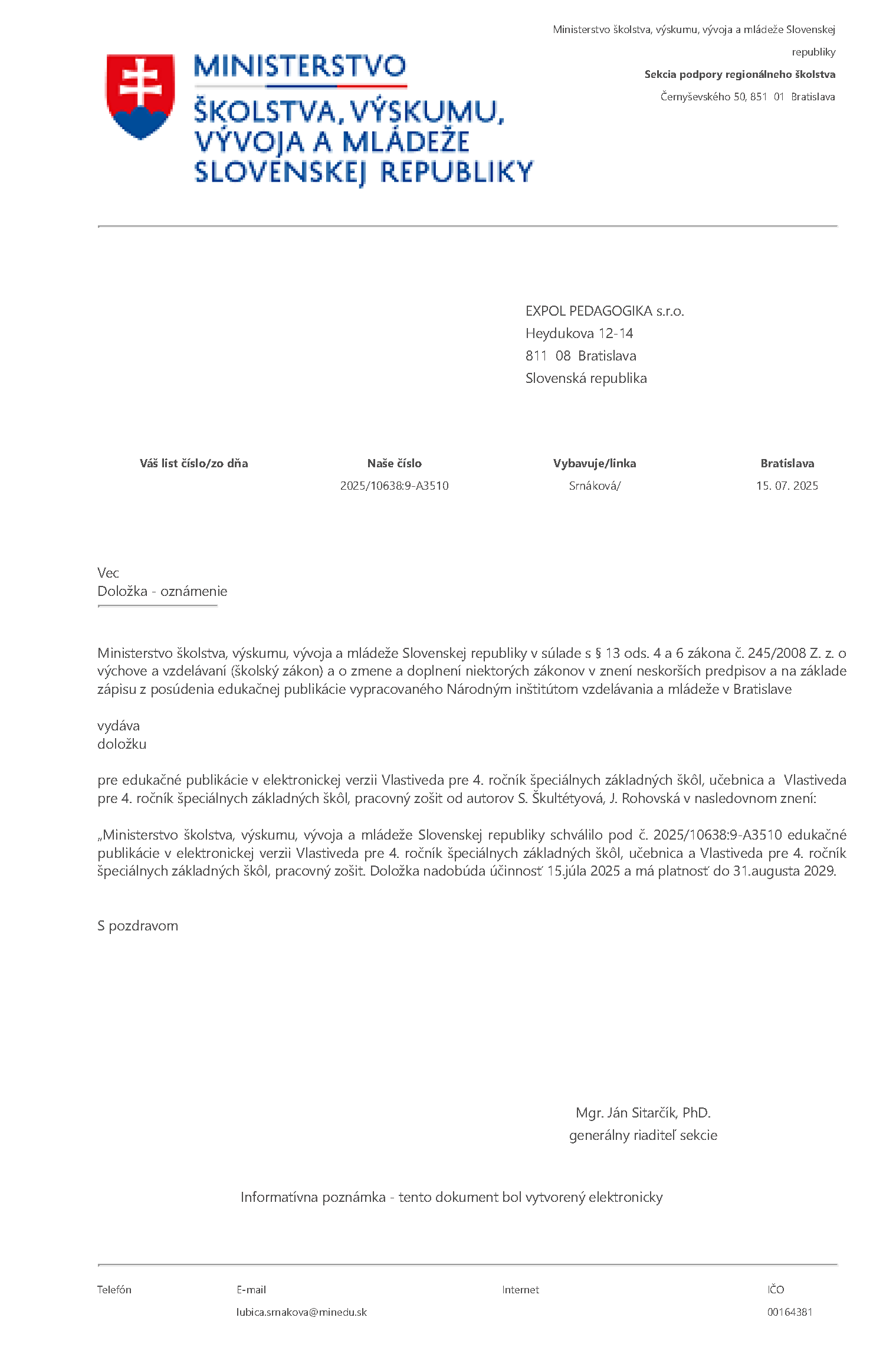 Jazyk | slovenský |