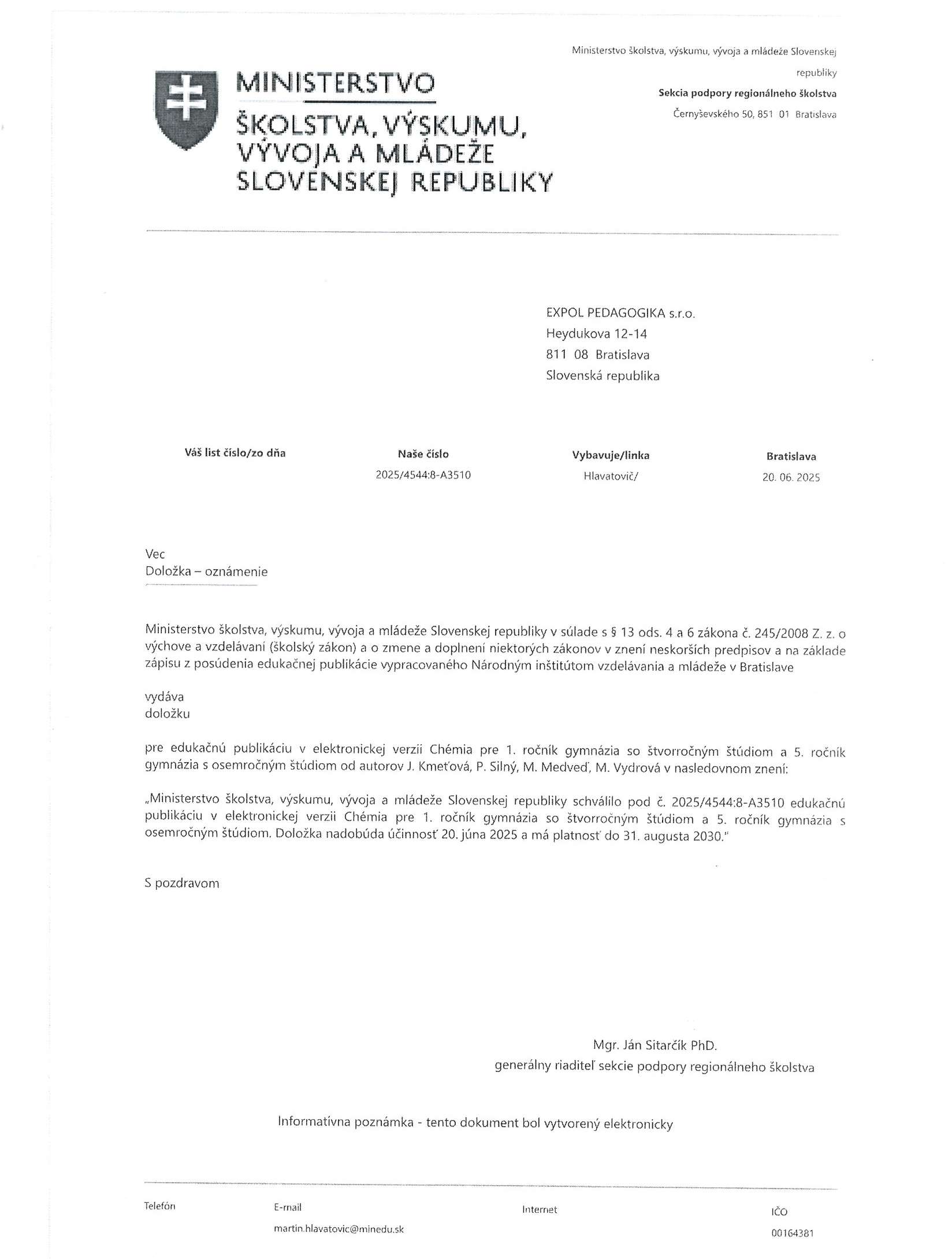 DIGITÁLNA UČEBNICA chémie pre 1. ročník gymnázia so štvorročným štúdiom a 5. ročník gymnázia s osemročným štúdiom.