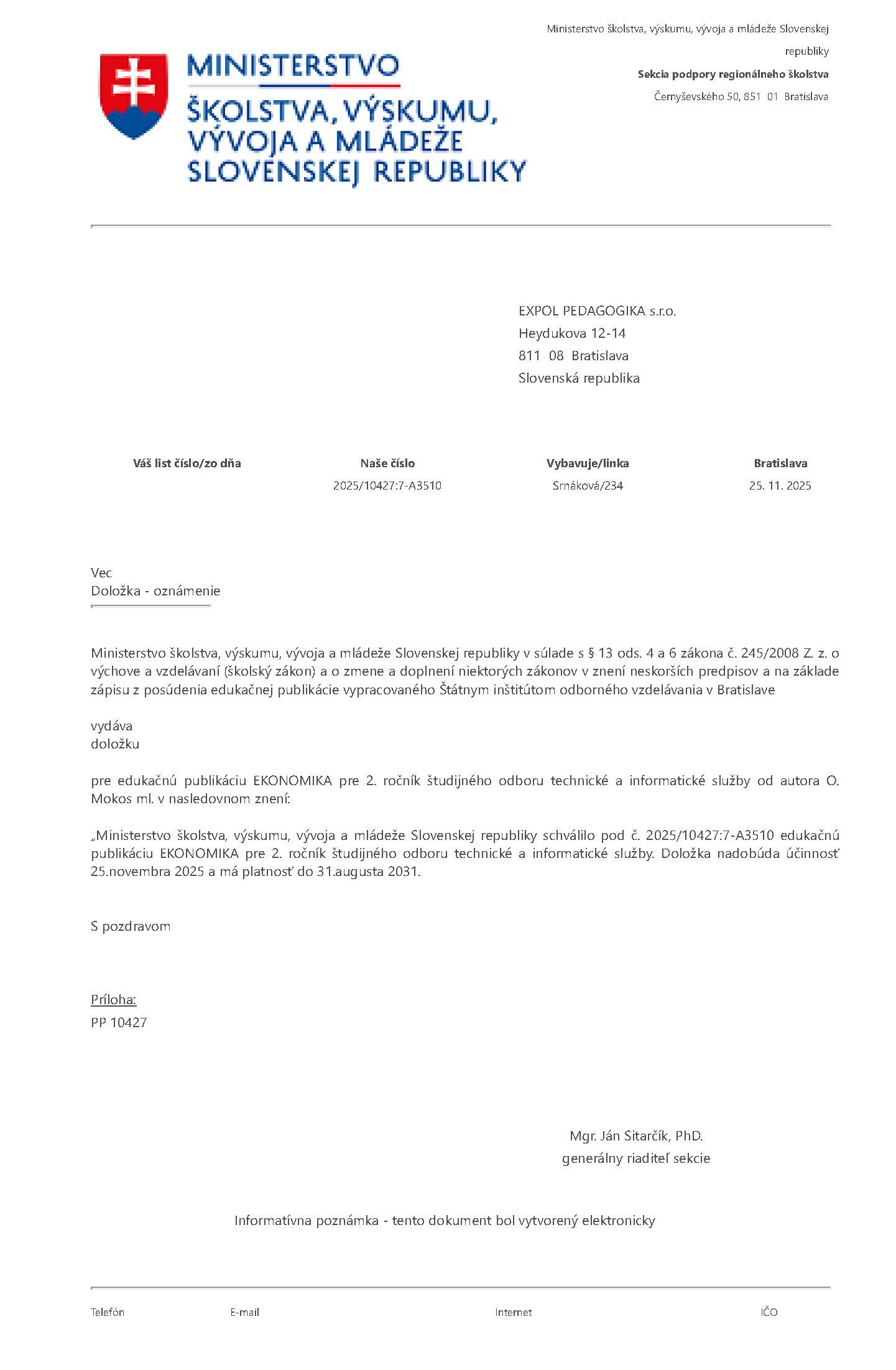 EKONOMIKA pre 2. ročník študijného odboru technické a informatické služby