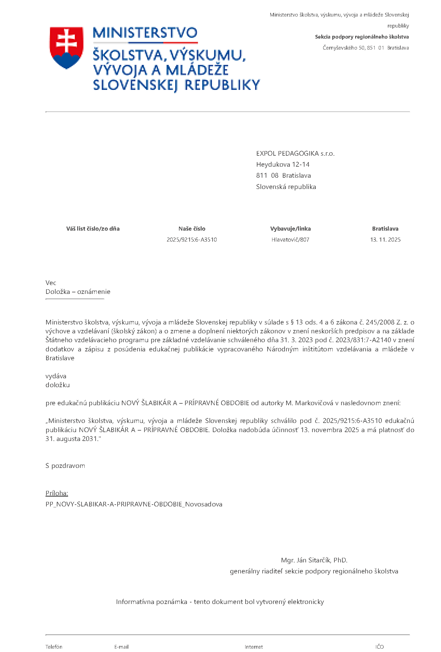 NOVÝ ŠLABIKÁR A – PRÍPRAVNÉ OBDOBIE