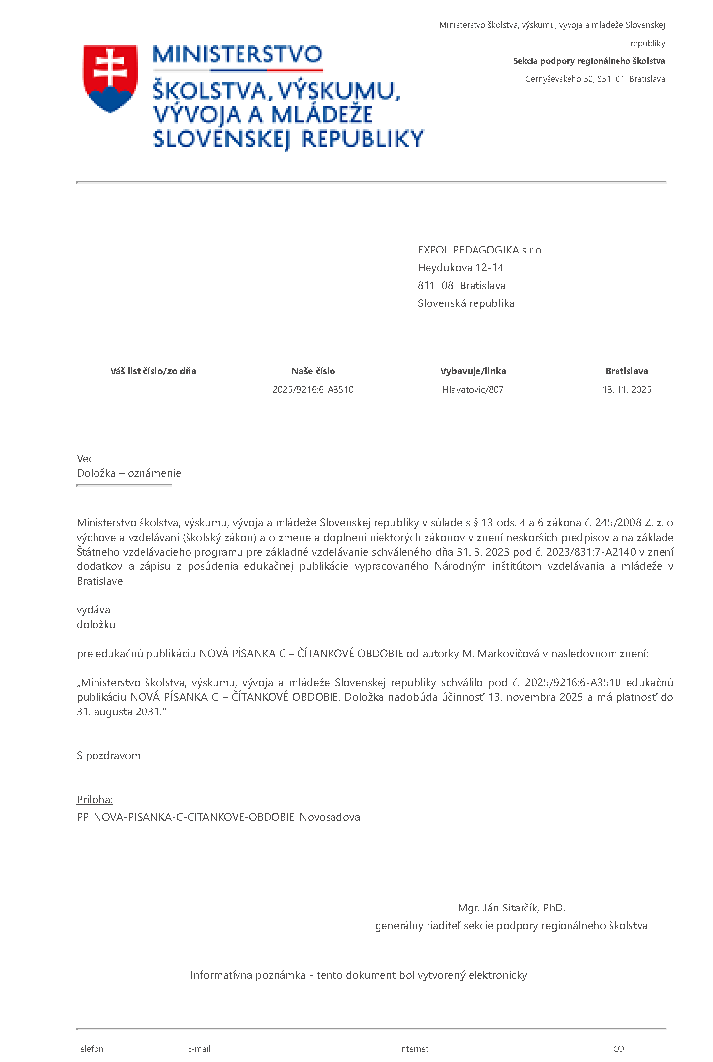 Nový ŠLABIKÁR A+B+C a PÍSANKY A+B+C– balík troch pracovných učebníc a troch pracovných zošitov s ministerskými doložkami vytvorených podľa nového ŠVP 2023.