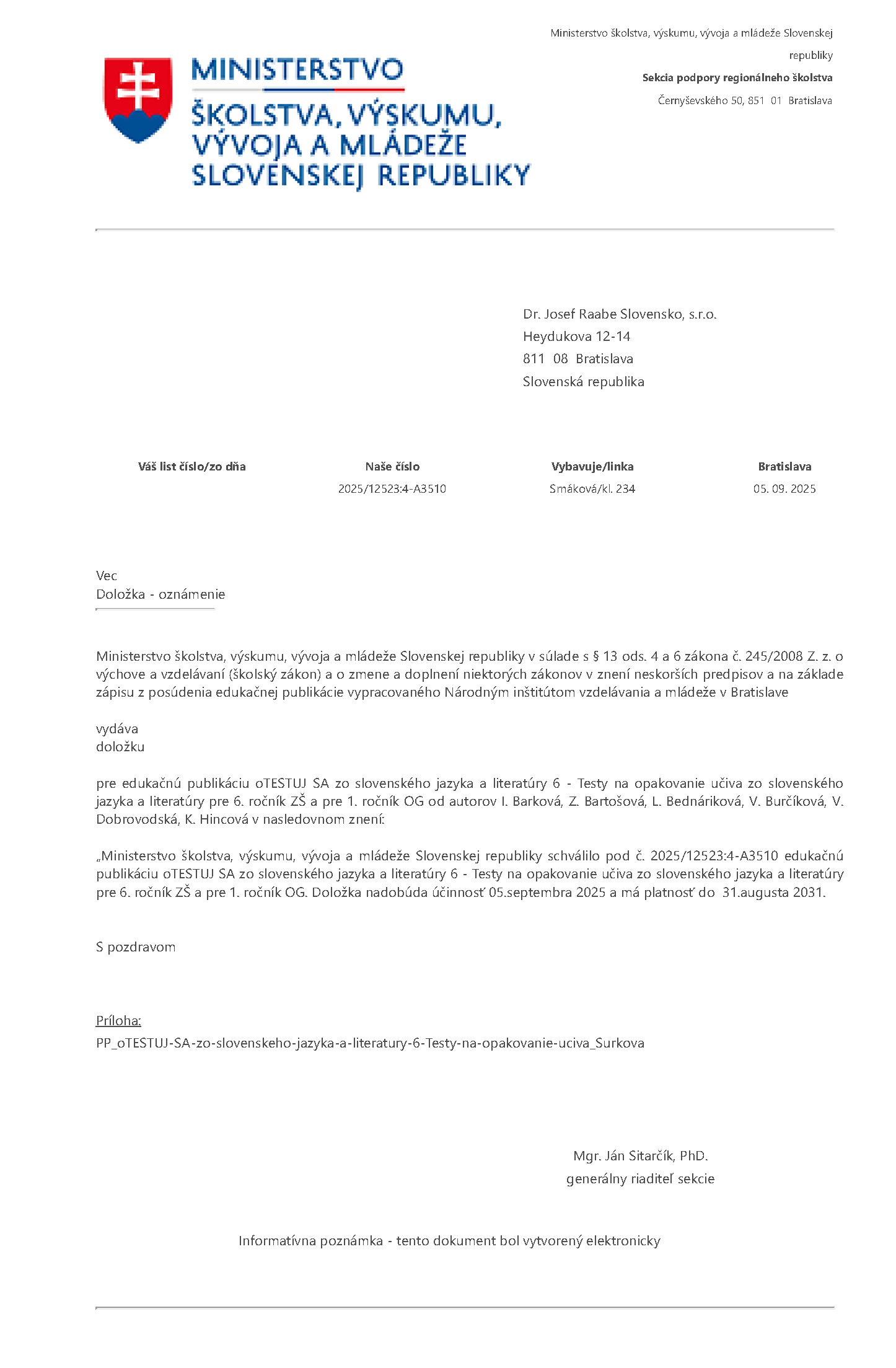 - v jednej publikácii nájdete profesionálne vypracované testy podľa jednotlivých tematických celkov zo SJL.