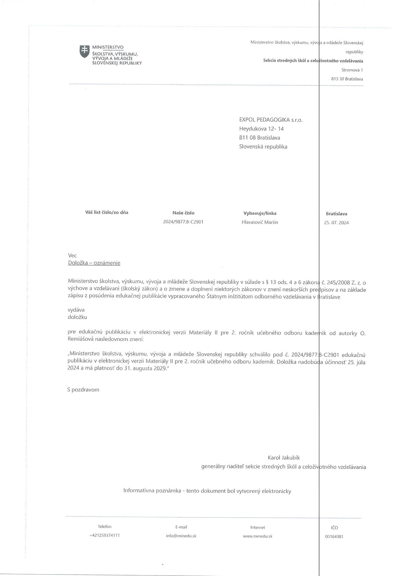 - Klasickú tlačenú učebnicu MATERIÁLY pre 2. ročník učebného odboru KADERNÍK