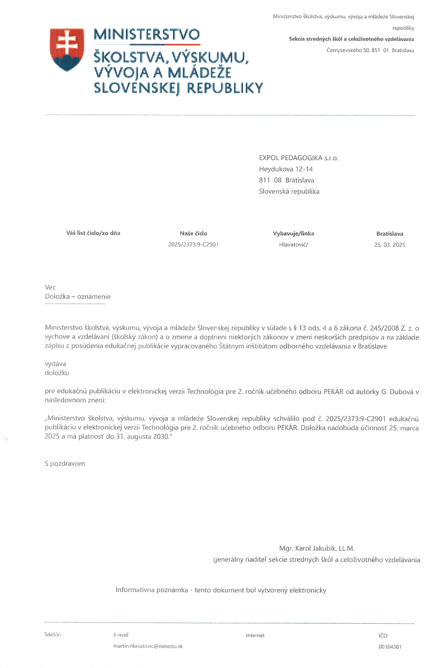 - Ročný prístup do DIGITÁLNEJ UČEBNICE TECHNOLÓGIA pre 2. ročník učebného odboru PEKÁR