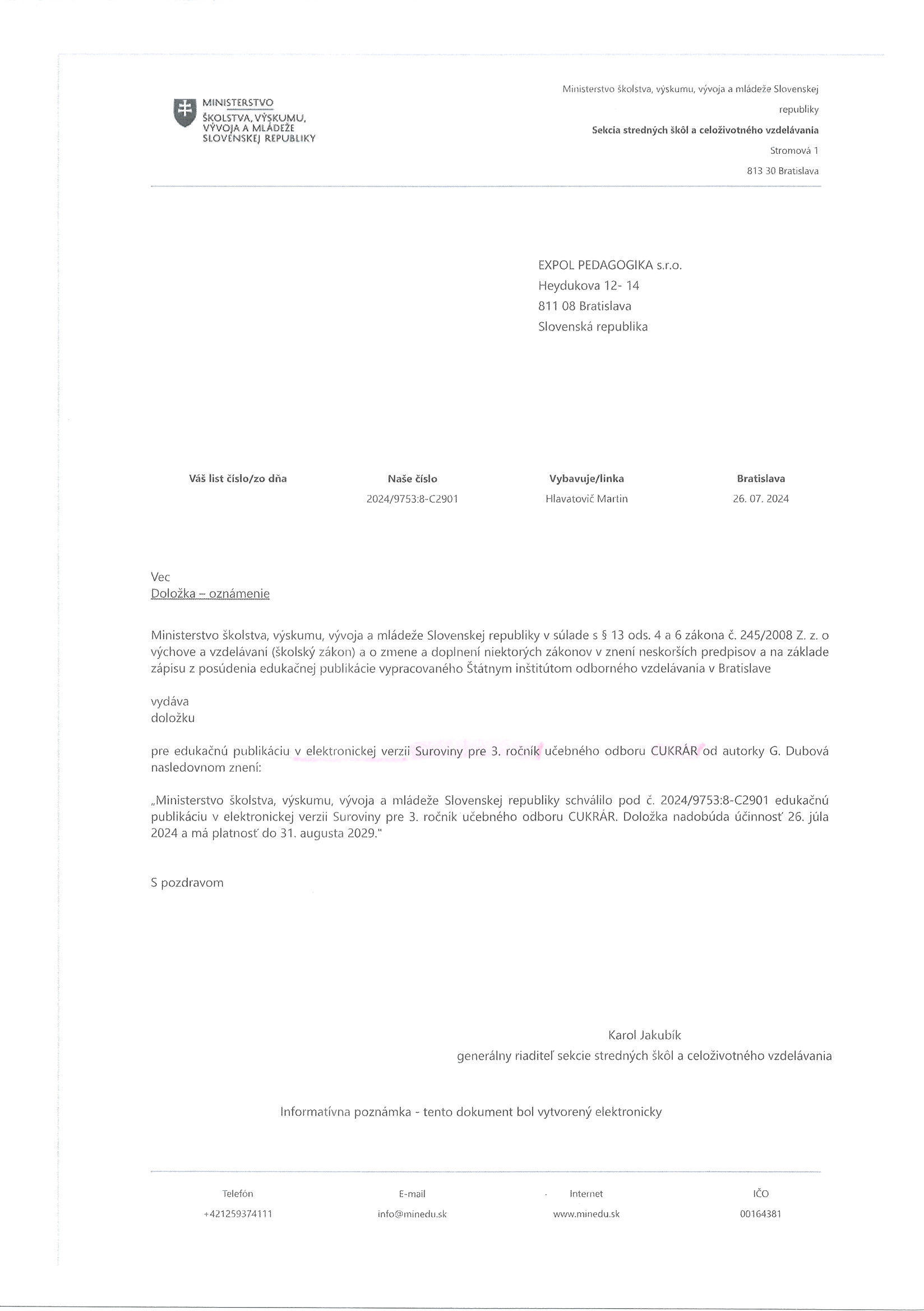 - Obsahovo na seba učebnice SUROVINY – učebný odbor CUKRÁR pre jednotlivé ročníky nadväzujú a prinášajú učivo rozpracované do jasných tematických celkov.