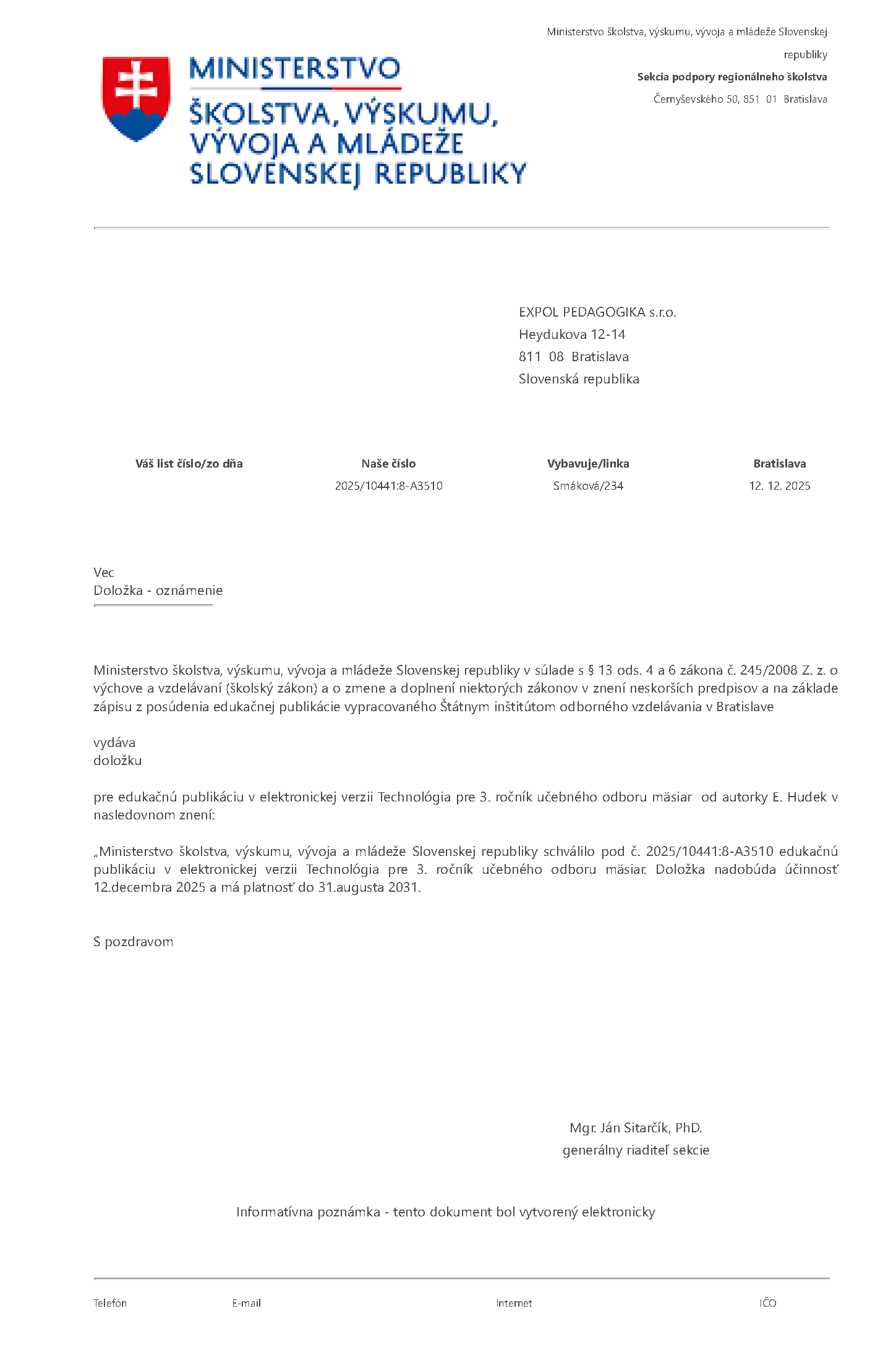 DIGITÁLNA UČEBNICA TECHNOLÓGIA pre 3. ročník učebného odboru MÄSIAR.
