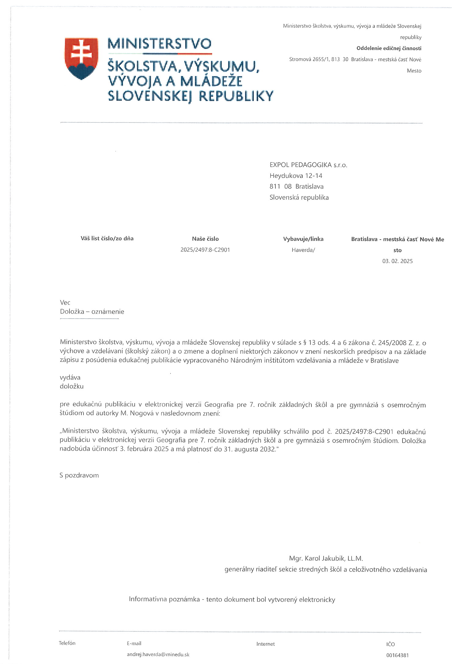 DIGITÁLNA UČEBNICA Geografia pre 7. ročník základných škôl a gymnáziá s osemročným štúdiom, ktorej obsah je v súlade s iŠVP pre základné školy - ISCED 2. Obsahuje všetky komponenty predpísané ŠVP v predmete geografia.