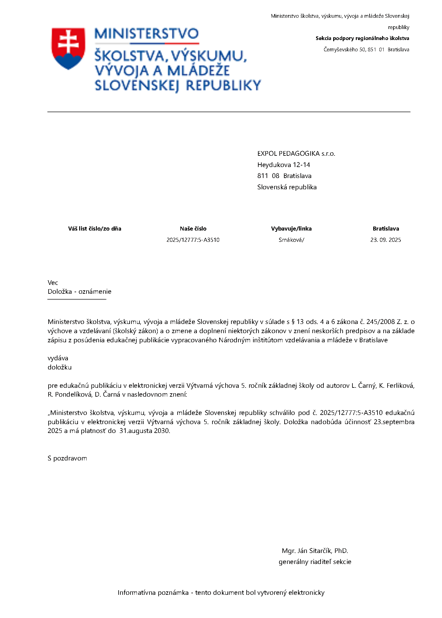 Jazyk | slovenský |