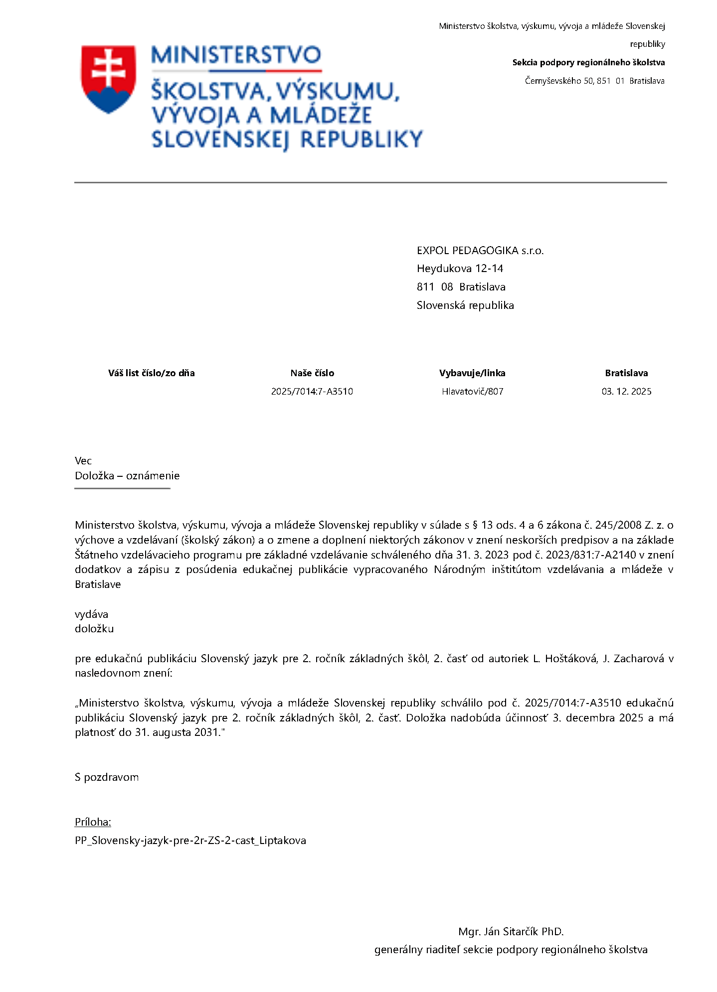 Výhodný balík obsahuje oba diely pracovnej učebnice slovenského jazyka pre druhákov, v ktorých sa systematicky striedajú tri zložky.